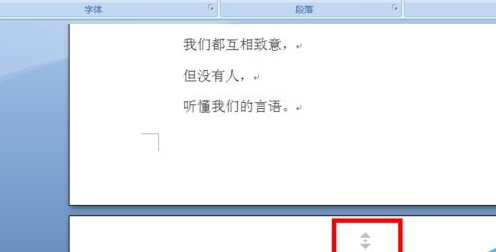 7、然后就会回到如图所示,此时我们会发现在word的左上方会有一个图标,如图所示。如果我们要自动滚动的时候,那么我们单击该图标,然后将鼠标移到word文章中就会有一个黑色的箭头,如图2所示。我们可以往上滚动也可以往下滚动,不需要滚动的时候只要单击下word即可