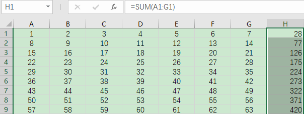 Excel多行多列快速求和方法: