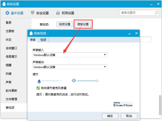 其次,软件设置问题(主要是语音视频设置的声音输入、输出设置不正确),比如常用的QQ软件。