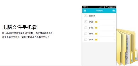 我们只需下载160wifi移动版,用其连接到我们的电脑当中,即可拿着手机来浏览电脑当中的图片、拿着手机也可以享受电脑当中的大片,节省了手机本身的存储空间,还很好的提升了手机的使用效率,让您在家中使用一部手机,即可完成学习、工作和娱乐。