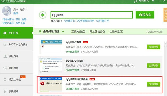3、找到QQ相关产品无法登陆选项,点击立即修复。修复完成后,重新打开QQ音乐,应该就可以了。