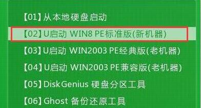 1、把u启动u盘启动盘连接好电脑,根据电脑开机画面提示,按开机启动快捷键进入u启动主菜单界面,选择【2】u启动win8pe标准版(新机器)选项回车,如图: