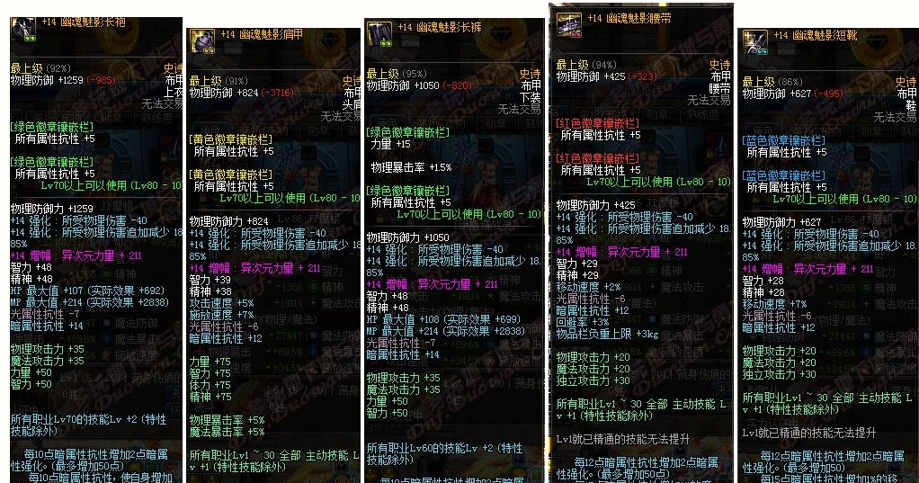 防具:全套增幅14幽魂,顶级附魔,全顶级徽章,看豪不豪的标准之一是能打多少+5抗性徽章