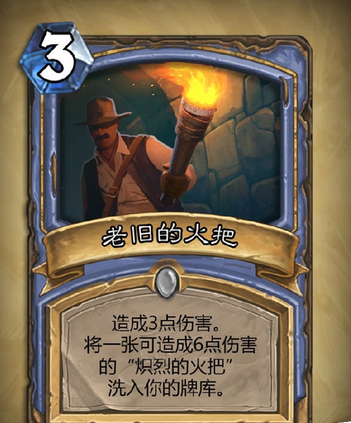 炉石传说老旧的火把第几关给?新冒险模式中给玩家带来了全新的45张卡牌,老旧的火把作为游戏中的法术卡牌,可以造成3点伤害.将一张可以造成6点伤害的"炽烈的火把"吸入你的牌库.那么一